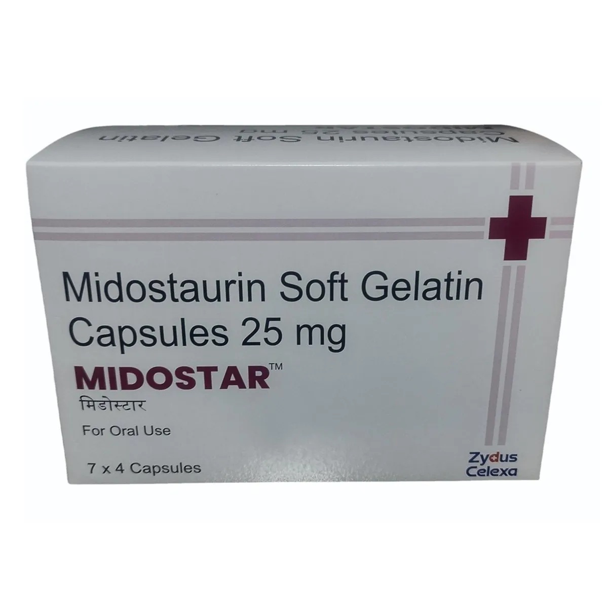 Midostaurin 25 mg capsules are a targeted cancer therapy used for the treatment of Acute Myeloid Leukemia (AML) and certain rare blood disorders. This medicine belongs to a group of drugs known as multi-targeted kinase inhibitors, which help stop the growth of cancer cells by blocking abnormal signals responsible for cell multiplication.